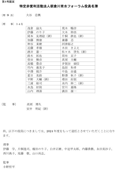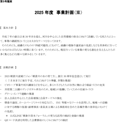 なお、例年行っています併催イベントでもあります「朝倉川へのメッセージ」については、今まで、多くのご参加を頂いていました小学生を中心にも参加していただけるよう、日程などの変更も含めて、今年度中の実施に向けて準備していますのでよろしくお願いいたします。