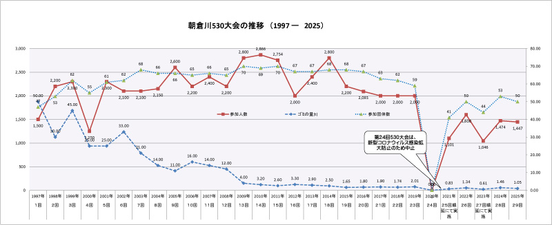 今年度は、20年以上継続する当団体にとっては最大規模の事業になります「朝倉川530大会」も新型コロナウィルス感染拡大防止の観点からやむを得ず中止とさせていただきました。